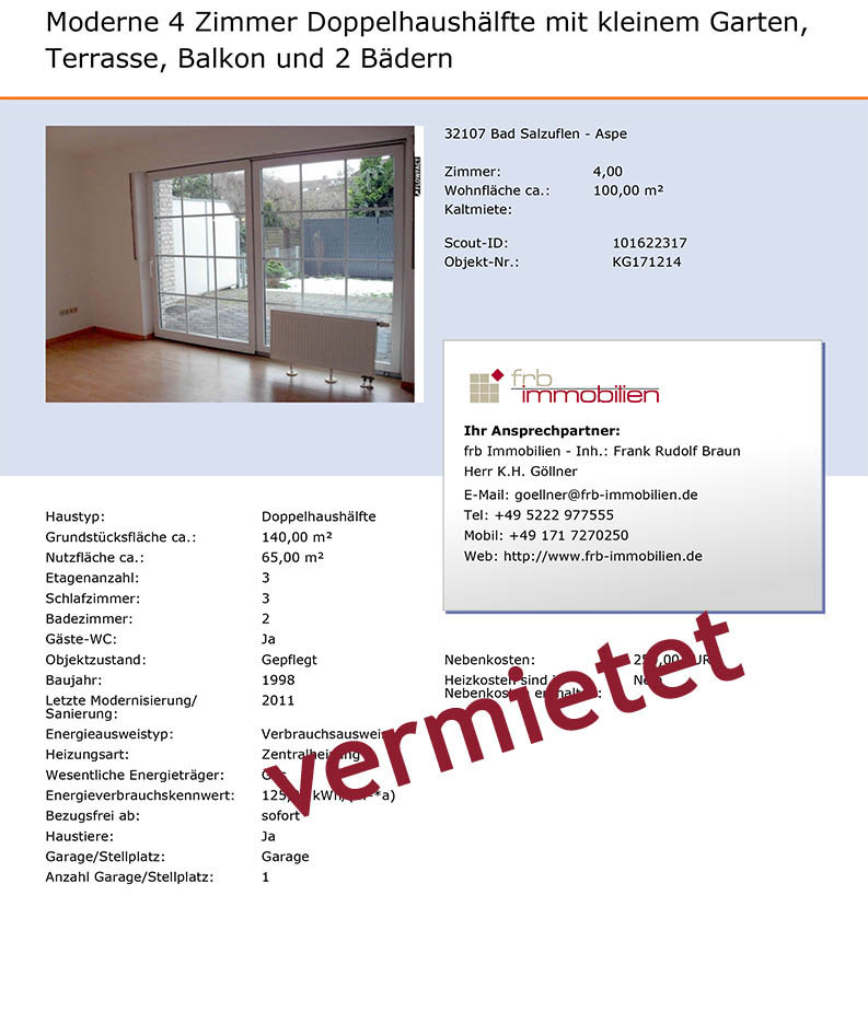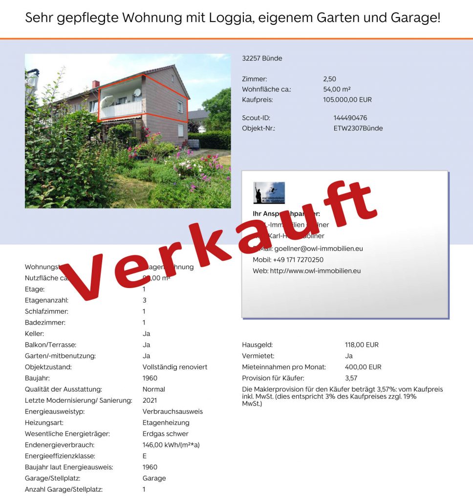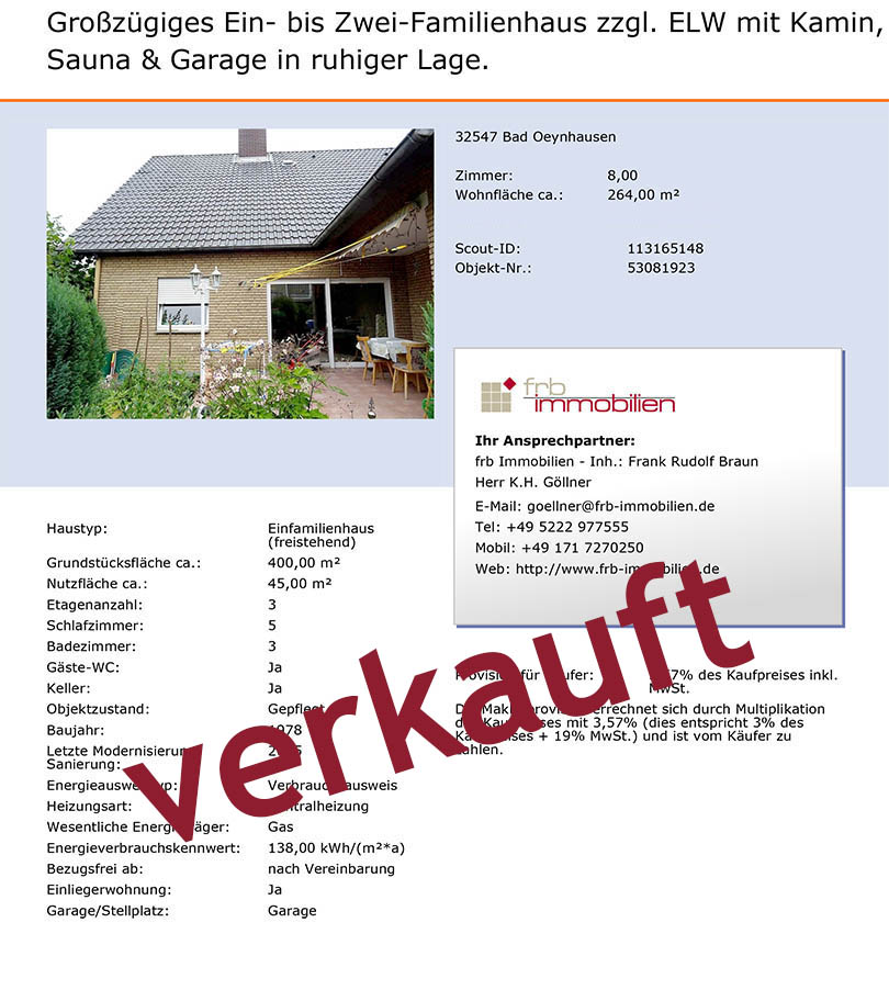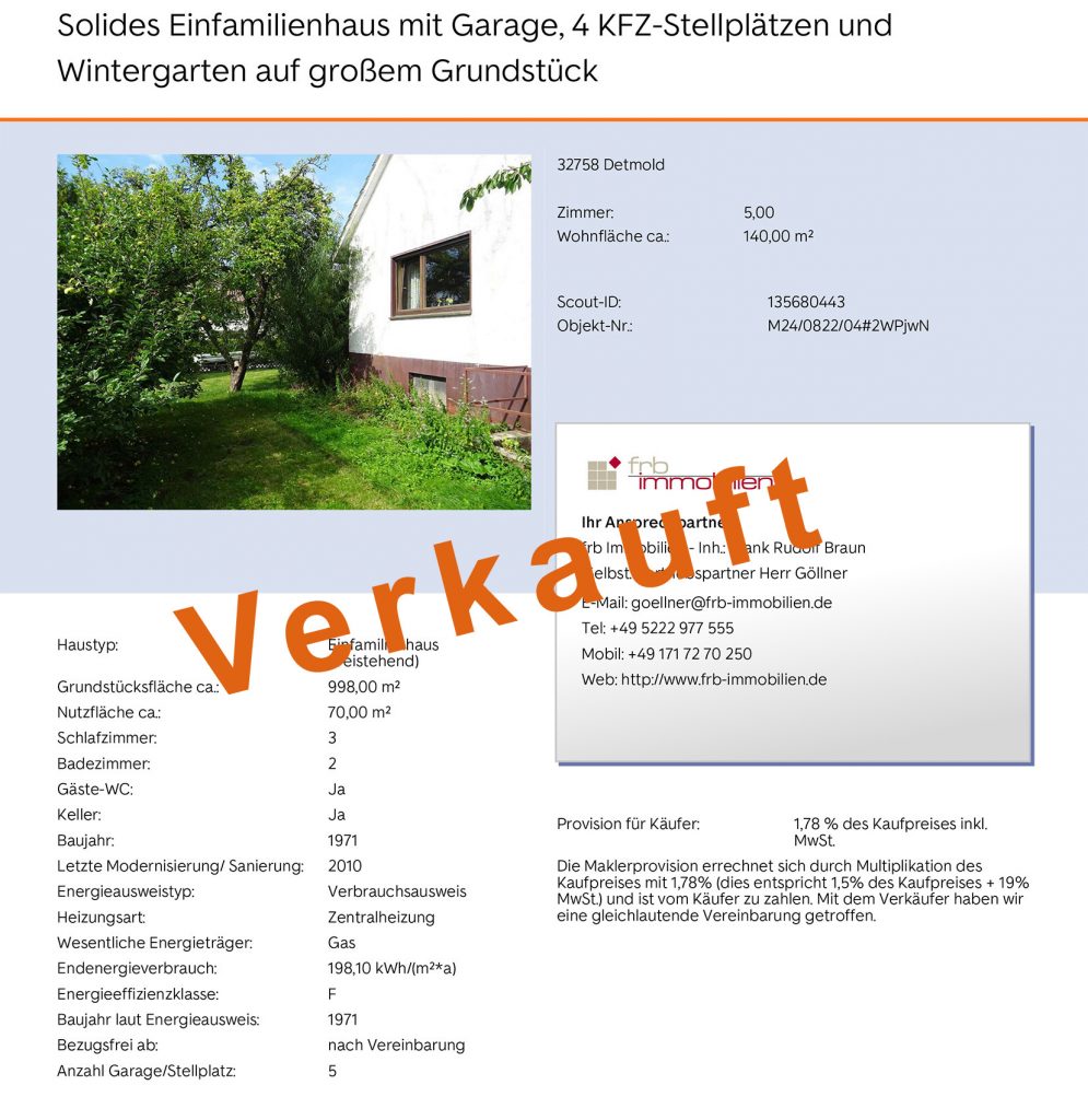 Hier eine kleine Auswahl meiner erfolgreich vermittelter Immobilien.
